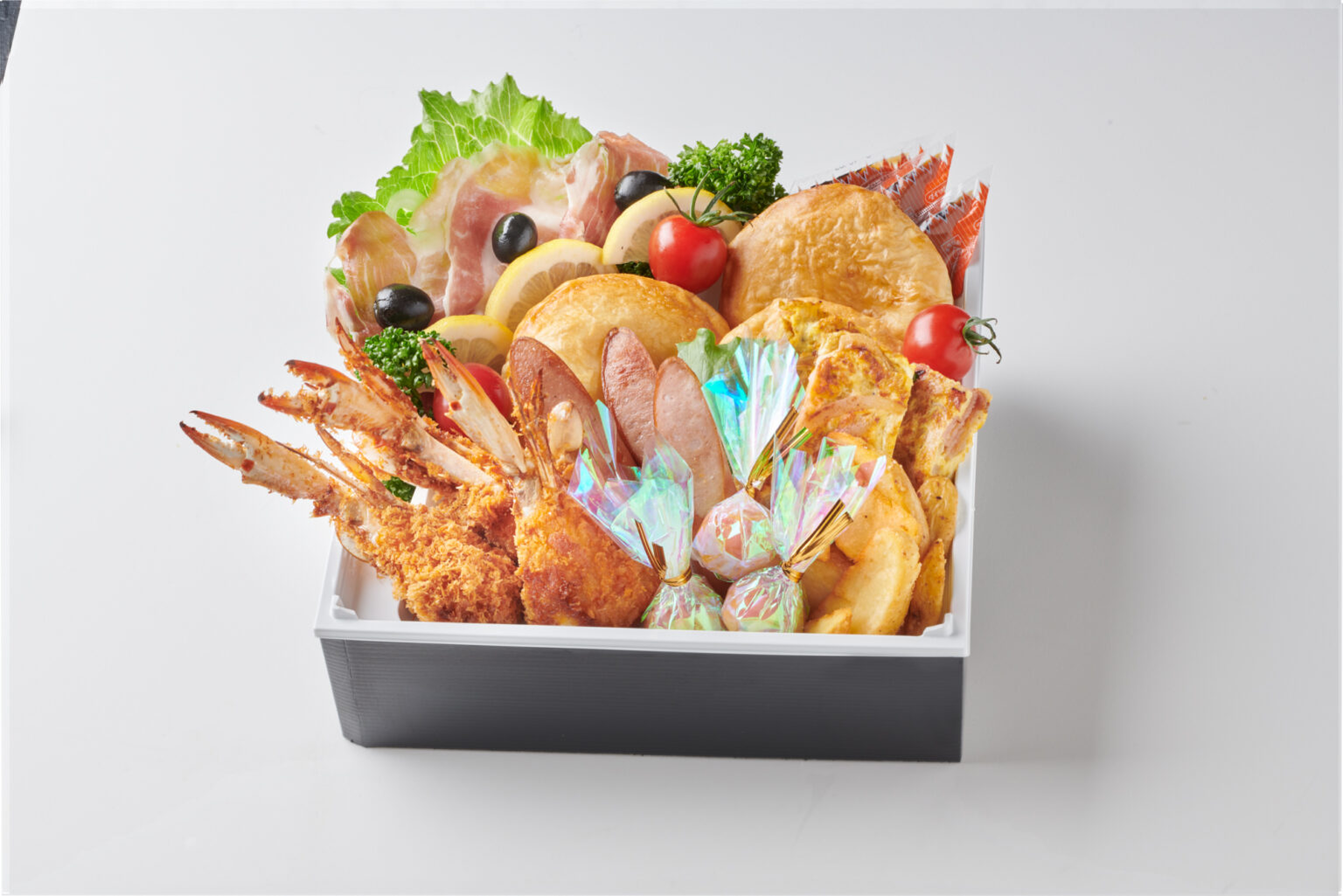 お祝いの席にふさわしい、縁起のよい赤箱をご用意いたしました。